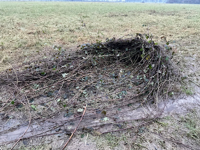 E ancora una parte di rovi tagliati che sembrano creare una sorta di nido hanno fatto grandi pulizie qui mischiando i rifiuti all'erba inquinando la terra